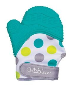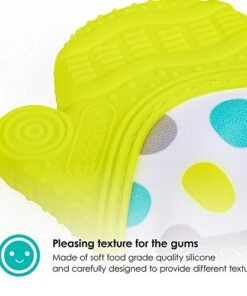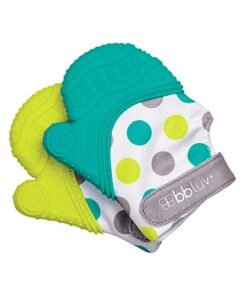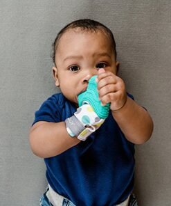 Details: Find relief and fun all in one! The Glüv is designed to provide stimulating gum massages thanks to its many textures. Baby can self-soothe teething pain without the inevitable drop of a regular teething toy. Fun toy with vivid colors and crinkle paper sounds.